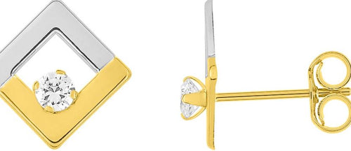 BOUCLES D OREILLES OR BICOLORE CARRE SOLITAIRE OXYDE DE ZIRCONIUM BLANC