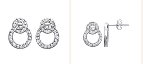 BOUCLES D'OREILLES ARGENT RHODIE PERLE DE CULTURE BLANCHE CONTOUR OXYDES BLANCS SERTIS 01105