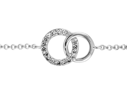 bracelet argent rhodié 2 cercles entremêlés oxydes blancs 024665