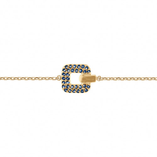 BRACELET Dame motif carré avec zirconiums Bleus PLAQUE OR