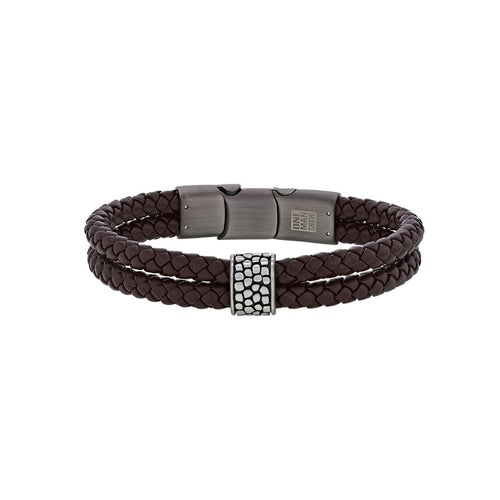 BRACELET Homme acier et cuir tressé plat BANG BANG N.21 SB021-BM-20