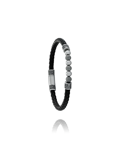 BRACELET Homme double rang cuir tressé et perles agate noire/map stone LAUREN STEVEN LSEXL1140