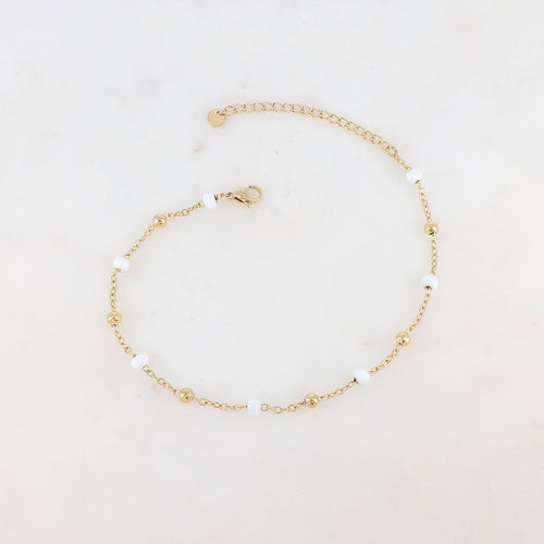 CHAINE DE CHEVILLE Dame coeurs et perles acier doré BOHM