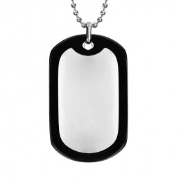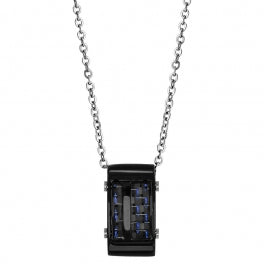 COLLIER ACIER HOMME PENDENTIF RECT PVD NOIR ET CARBONE