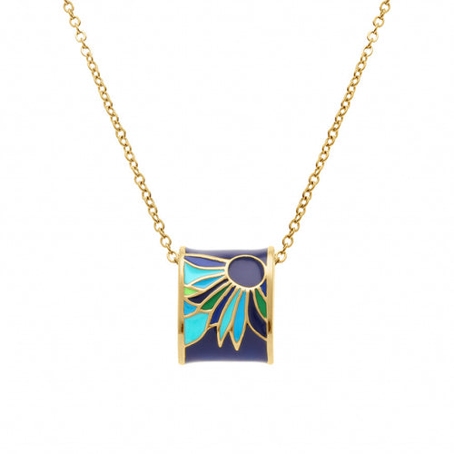 COLLIER Dame goutte résine bleue et verte ACIER DORE INOXYDABLE STELLA MIA
