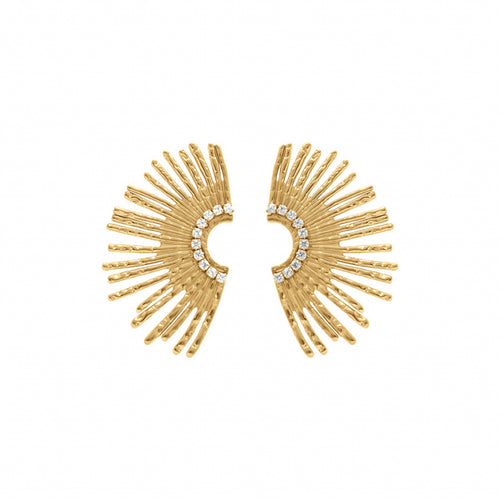 BOUCLES D OREILLES Dame ACIER DORE FORME EVENTAILLE + OXYDES