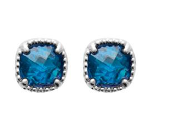 BOUCLES D OREILLES CLOU ARGENT RHODIE OXYDE BLEU
