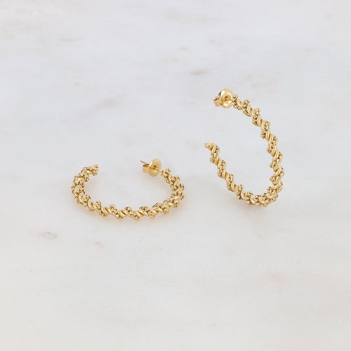 BOUCLES D'OREILLES Dame ACIER DORE CREOLES TORSADEES
