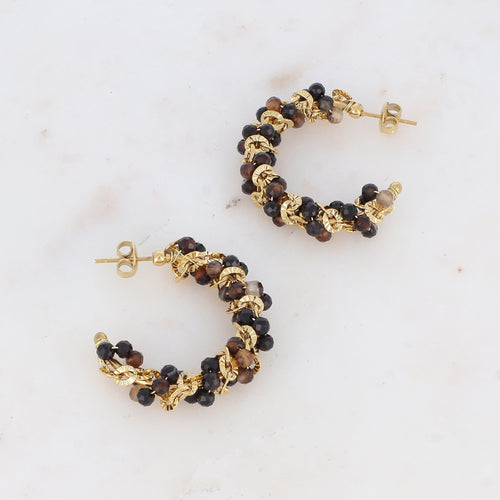 Créoles à puce avec PERLES EN PIERRES NATURELLES