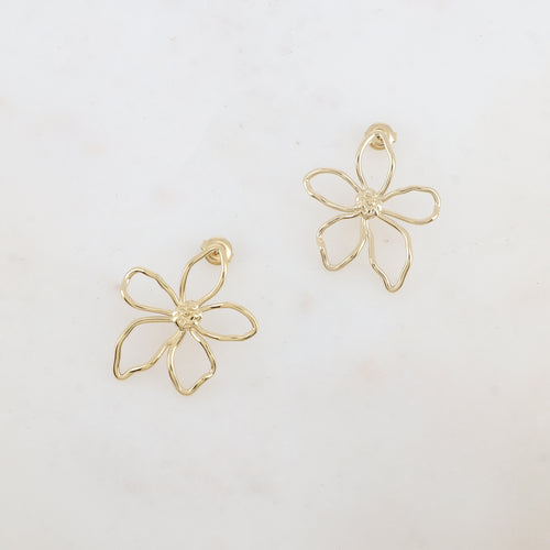 BOUCLES D'OREILLES Dame à puce ACIER DORE fleur ajourée