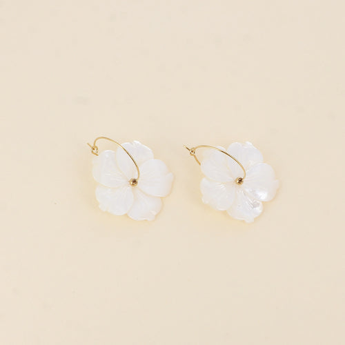 • Créoles Femme ACIER fleur nacrée 3 cm BOHM