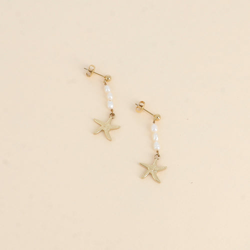 • BOUCLES D'OREILLES Dame étoiles de mer et perles d'eau douce BOHM