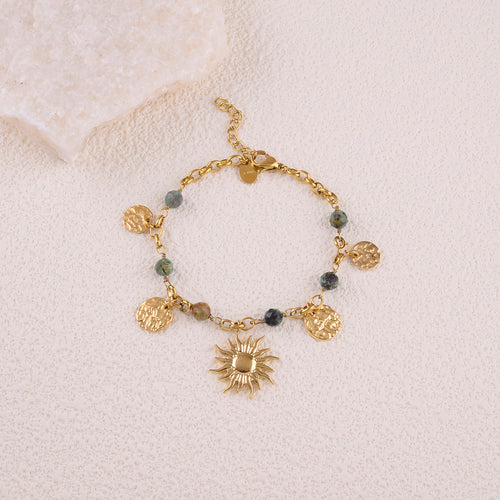 • Bracelet Dame ACIER Rosaline pampilles rondes martelées, pierres naturelles