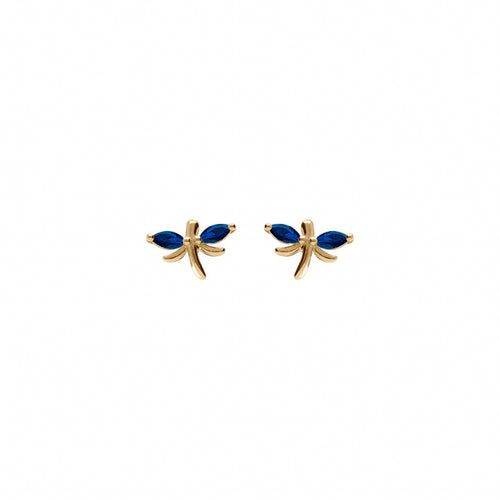 BOUCLES D'OREILLES Dame "libellule" oxydes bleus ARGENT DORE