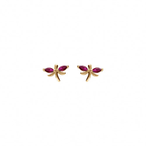 BOUCLES D'OREILLES Dame "libellule" oxydes fushias ARGENT DORE