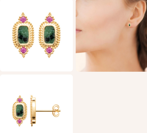 BOUCLES D OREILLES Femme plaqué or et Jaspe dalmatien