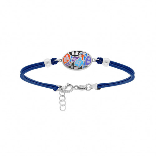 BRACELET ACIER STELLA MIA MOTIF OVALE VISAGE MULTI COULEURS CORDON BLEU