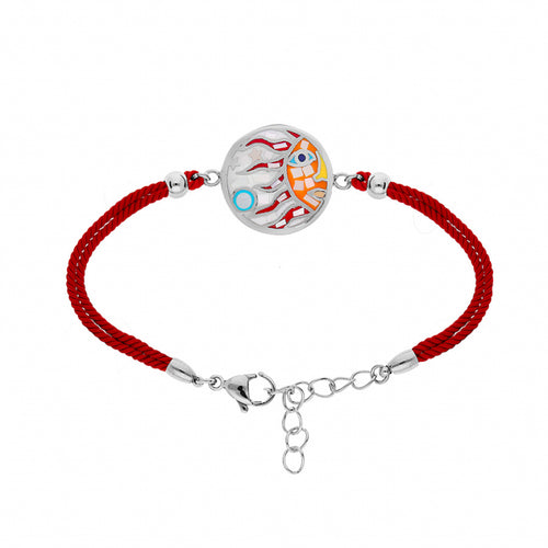 BRACELET ACIER STELLA MIA SOLEIL MULTICOULEUR AVEC NACRE CORDON ROUGE