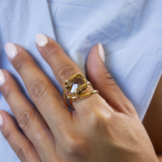 Cette bague ajustable Marazzini allie élégance et modernité avec son cristal fumé taillé en octogone, serti dans un métal doré raffiné. Son design sophistiqué s’adapte parfaitement à toutes les tailles, offrant un confort optimal et un style unique. Idéale pour sublimer vos tenues avec une touche de mystère et de glamour.