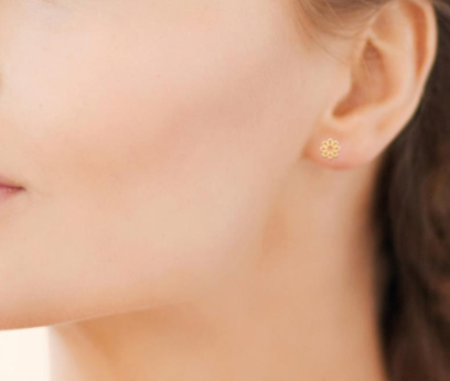BOUCLES D OREILLES Femme FLEUR PLAQUE OR