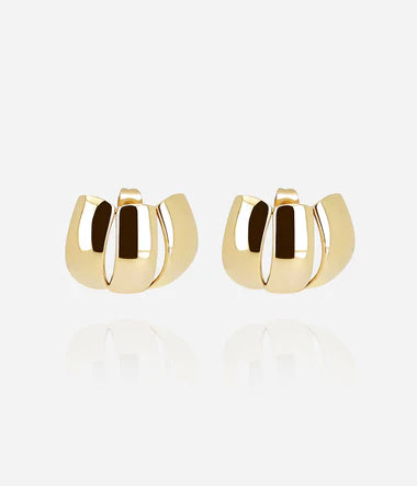 Boucles d'oreilles en acier uni ou doré à l’or fin par ionisation. Elles sont composées de trois demi anneaux allant vers le haut.