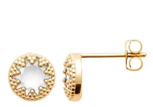 BOUCLES D'OREILLES Dame clous forme ronde avec cristal PLAQUE OR