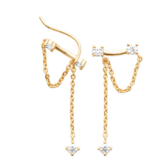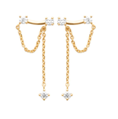 BOUCLES D'OREILLES Dame contour plaqué or + oxydes + chainette