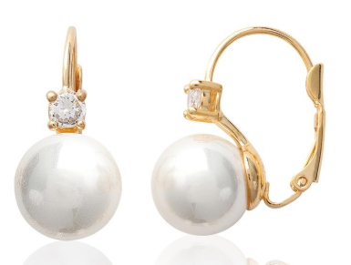 BOUCLES D'OREILLES Dame Dormeuse perles imitation + 1 oxyde PLAQUE OR
