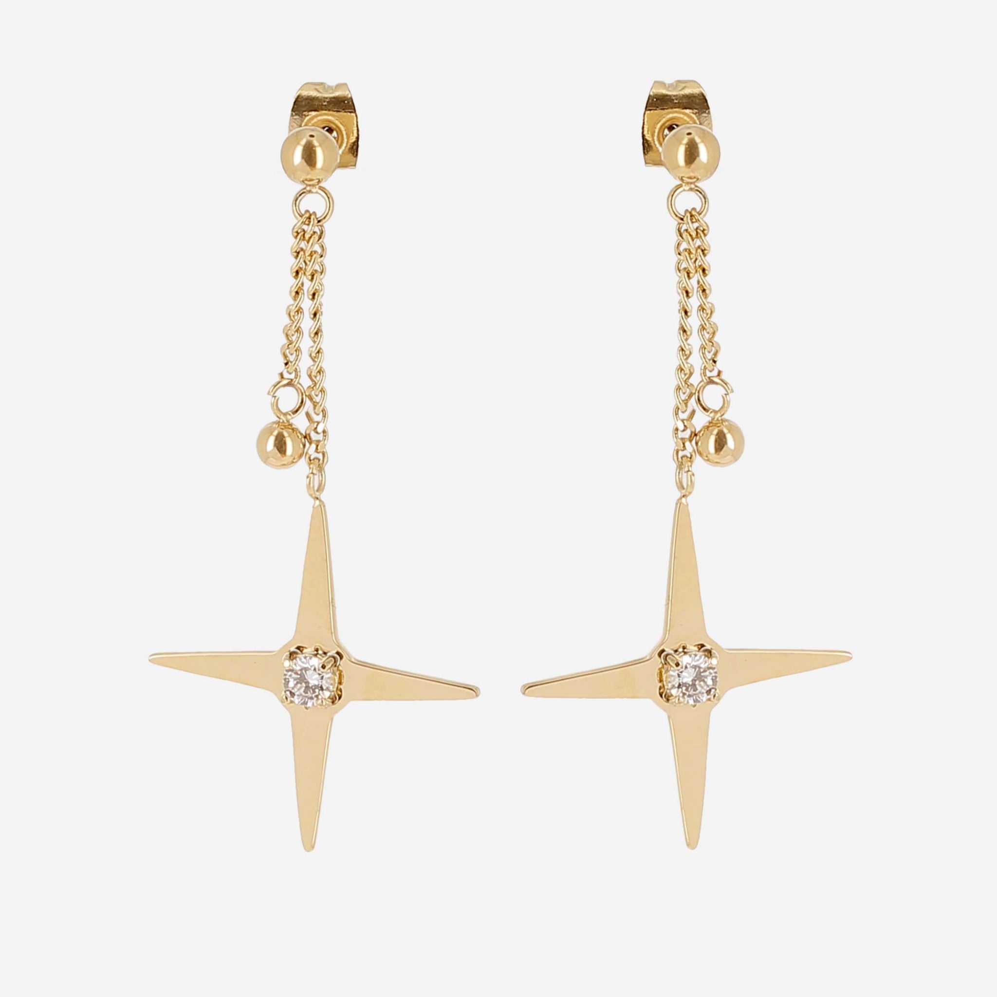 • Puce boule munie de 2 chainettes dont une est munie d'une étoile 4 branches avec oxyde en son centre.