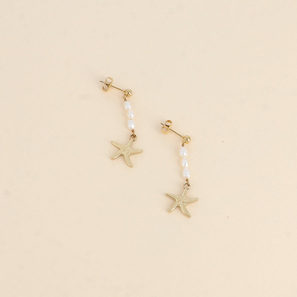 BOUCLES D'OREILLES Dame étoiles de mer et perles d'eau douce BOHM