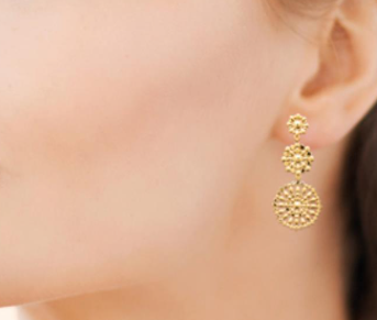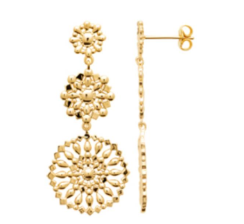 BOUCLES D'OREILLES Dame pendantes avec ronds ajourés PLAQUE OR