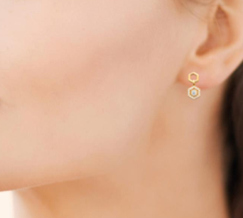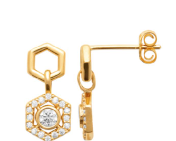 BOUCLES D'OREILLES Dame pendantes hexagonales empierrées PLAQUE OR