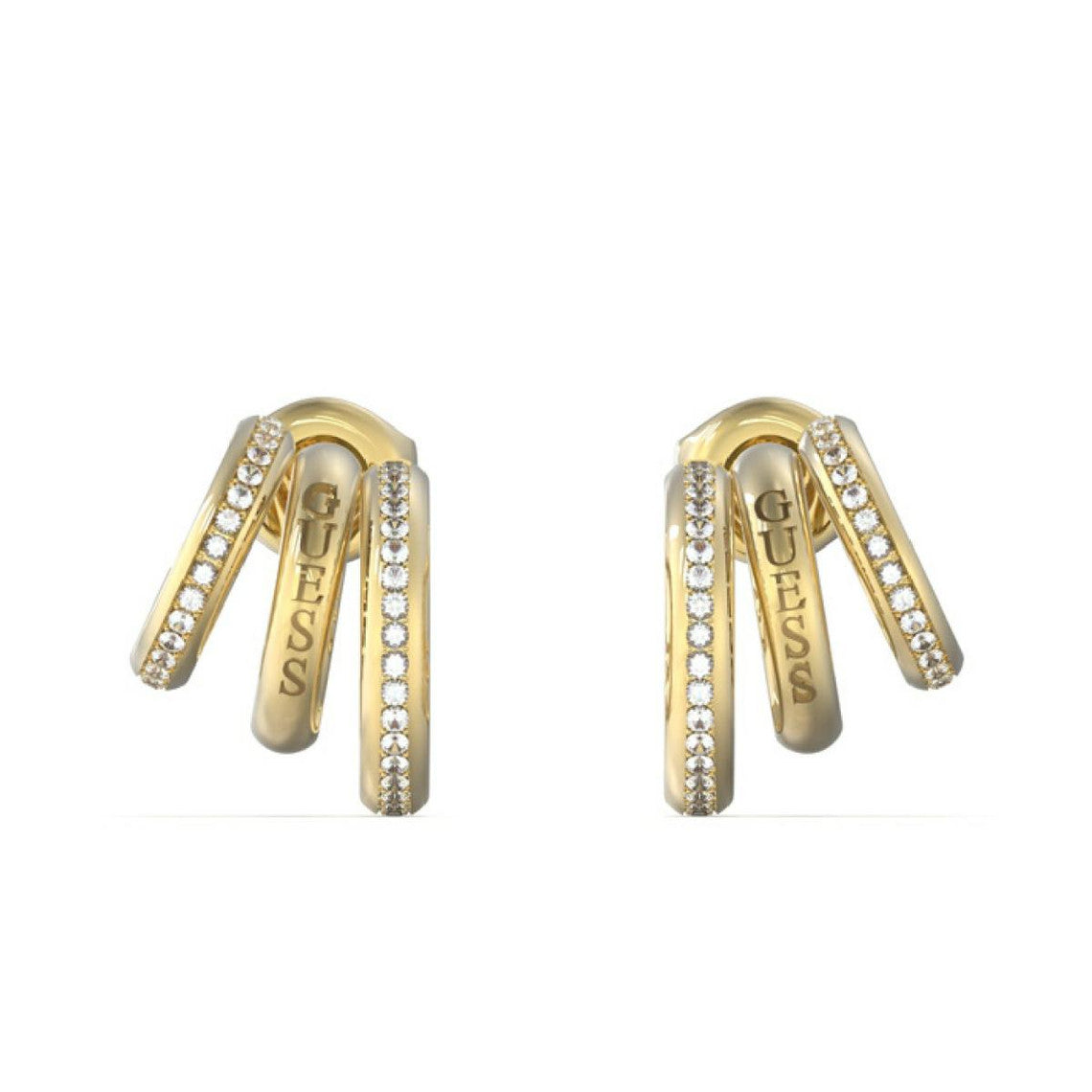 Ces boucles d'oreilles de chez GUESS sont un must-have pour toute dame. Avec leur design élégant à triple anneau ouvert, ces boucles d'oreilles ajoutent une touche de brillance et de féminité à n'importe quelle tenue. Un accessoire de mode incontournable pour un look raffiné et chic.