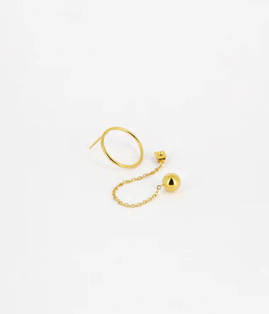 Ce bijou composé en deux parties est formé d'un cercle qui vient se poser à l'avant de l'oreille, et d'une autre partie pendante avec à son bout une boule en acier.