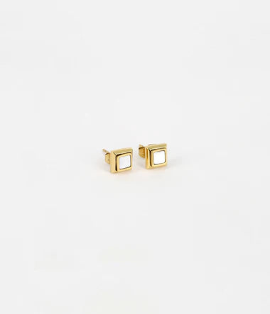 Boucles d'oreilles en acier doré à l'or fin par ionisation sur lequel une forme carrée et colorée est attachée.