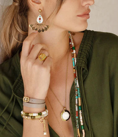 Il se porte aussi bien seul que mélangé à des bracelets ornés de pierres semi-précieuses.