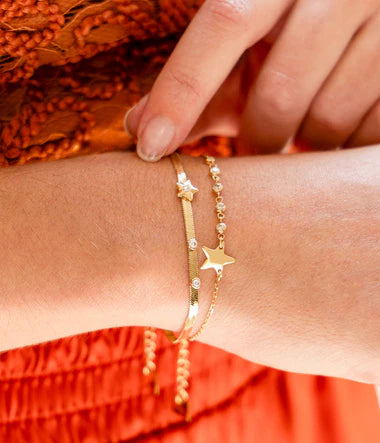 Bracelet en acier uni ou doré à l'or fin par ionisation sur lequel sont sertis des zirconiums et une étoile en acier.