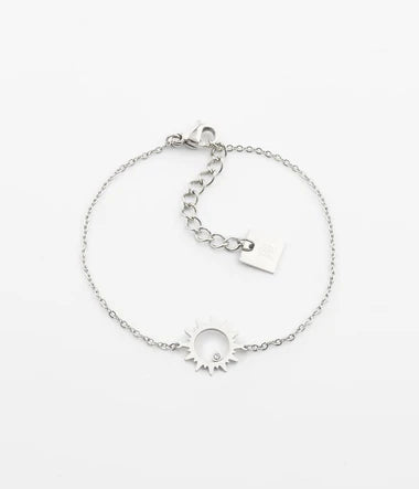 • Bracelet chaînette en acier uni ou doré à l'or fin arborant un motif de cercle à petits picots avec un zirconium en son centre.