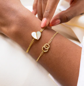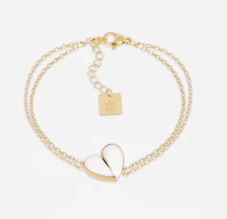 Bracelet en acier inoxydable uni ou doré serti d'un pendentif en forme de cœur serti de nacre coupé en 2.Il est ravissant de mélanger plusieurs bracelets pour obtenir une magnifique accumulation.