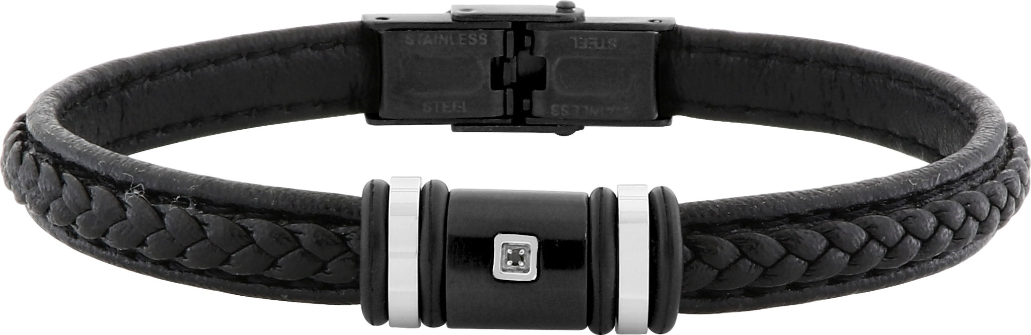 BRACELET Homme Cuir noir, Acier, et diamant noir
