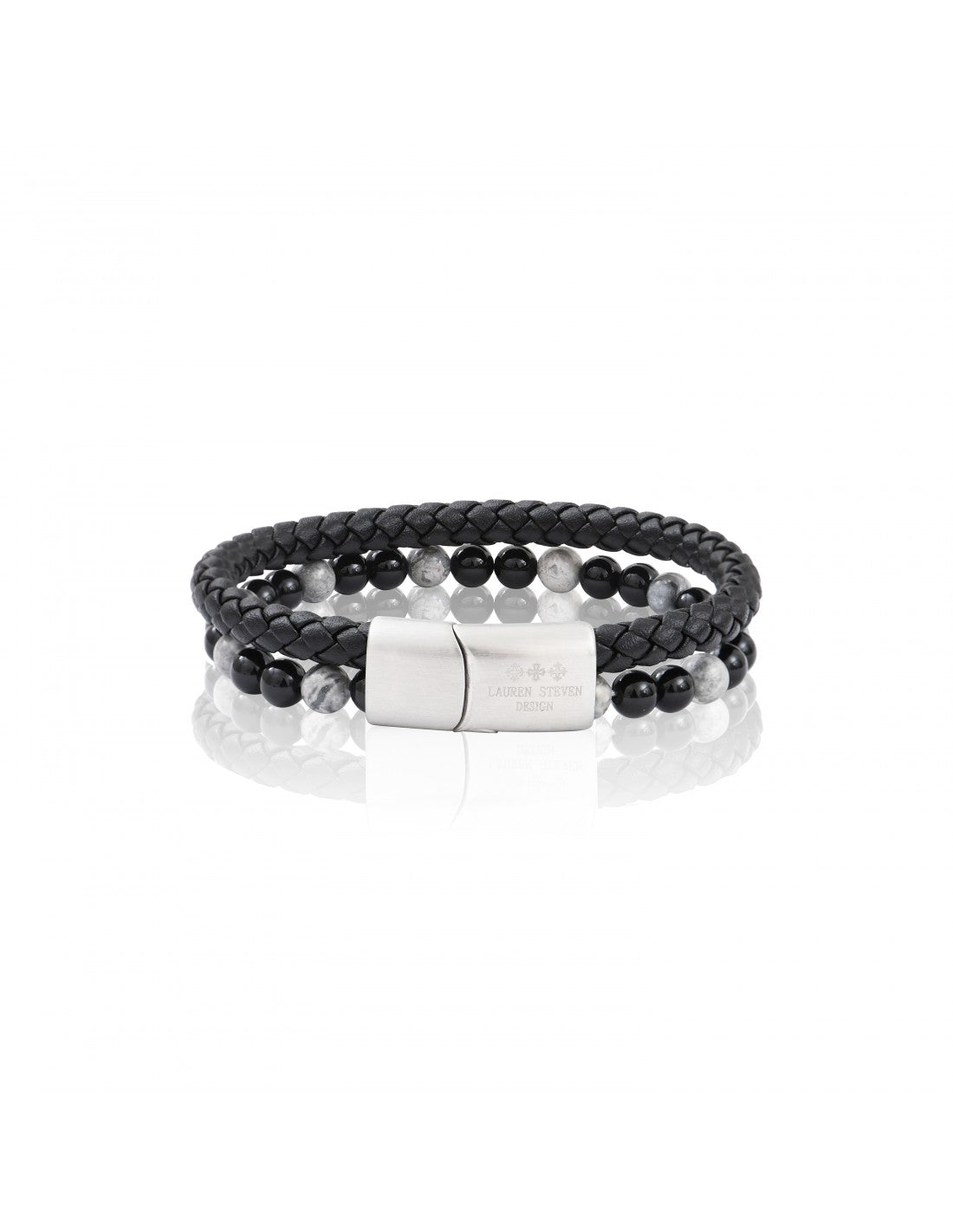 Ce bracelet double rang pour homme allie élégance et authenticité grâce à son cuir tressé de qualité et ses perles en agate noire et map stone. Avec une longueur de 21,5 cm, il offre un ajustement confortable tout en apportant une touche raffinée à votre style. Parfait pour ceux qui recherchent un accessoire à la fois sobre et distinctif.