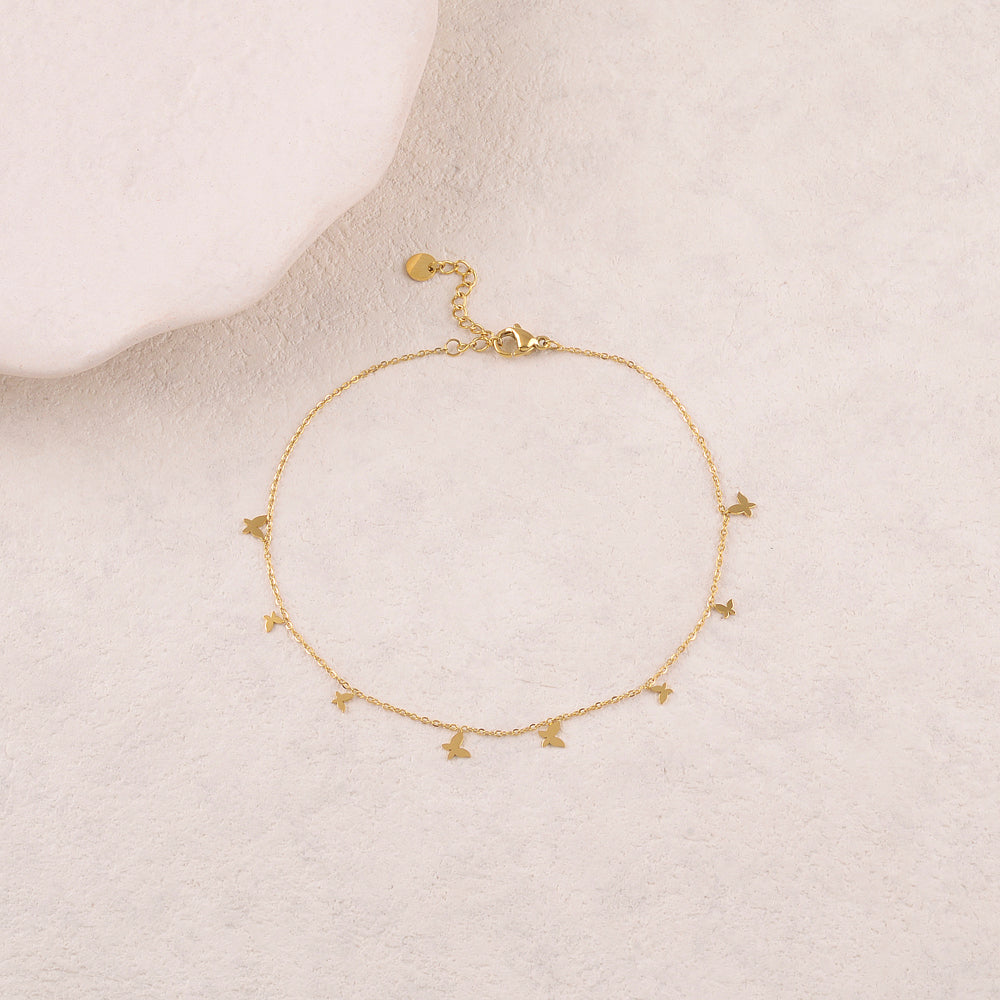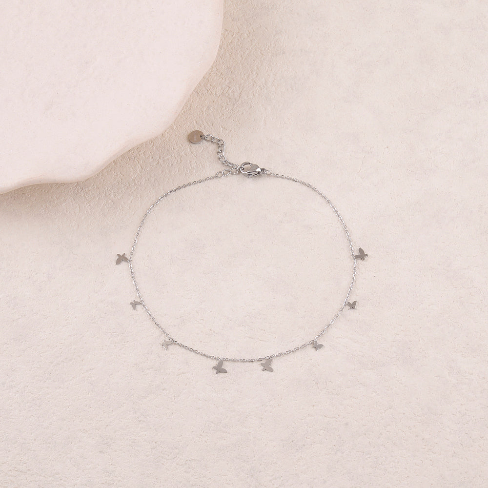 Chaine de cheville avec pampilles Papillons Acier