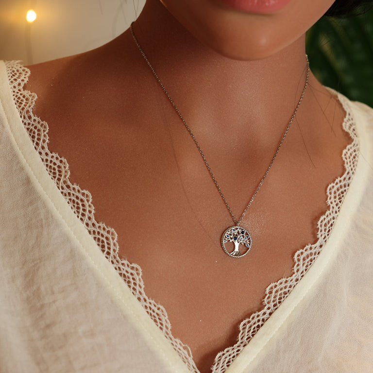 COLLIER Dame ARGENT RHODIÉ PENDENTIF ARBRE DE VIE