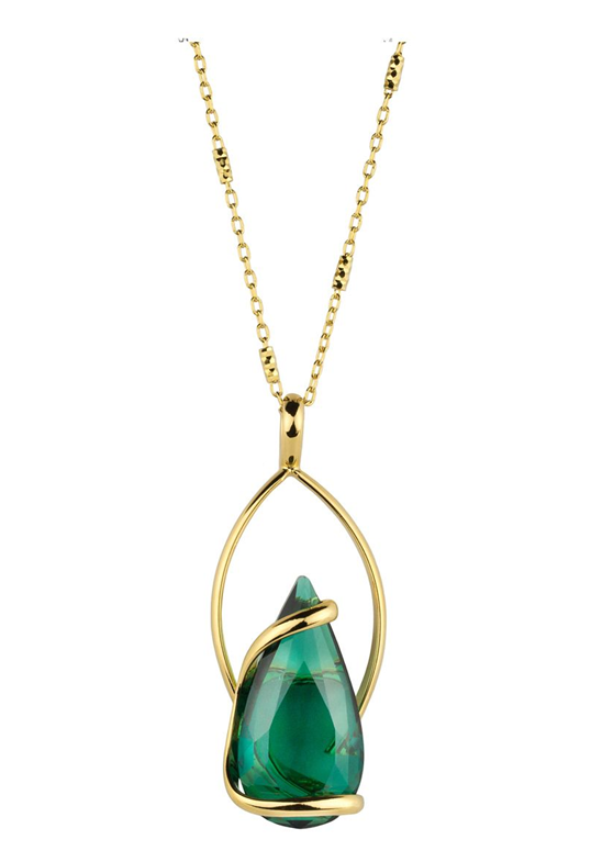 Matière : Métal doré - Pierre : Cristal couleur émeraude