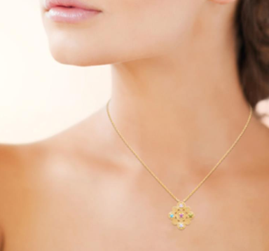 COLLIER Dame pendentif losange avec oxydes multicolores PLAQUE OR