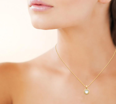 COLLIER Dame pendentif rond avec cristal bleu ou blanc PLAQUE OR