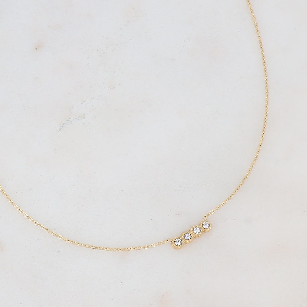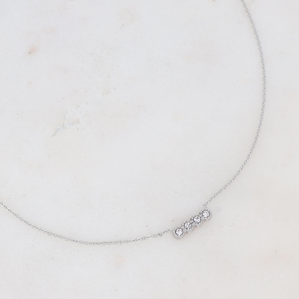 Collier en acier inoxydable composé d'une rangée sertie de 4 oxydes de zirconiums.