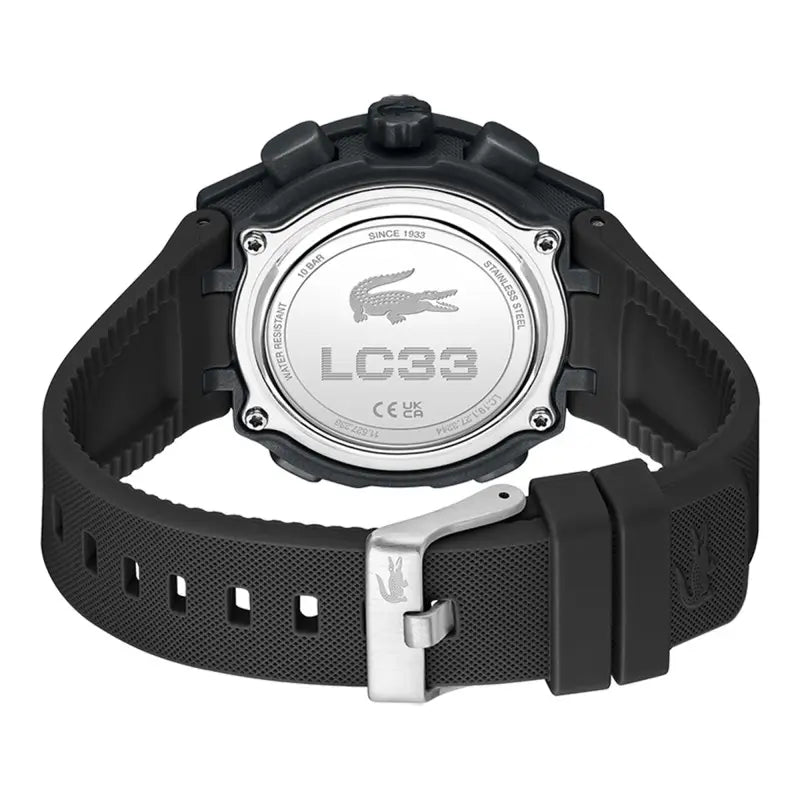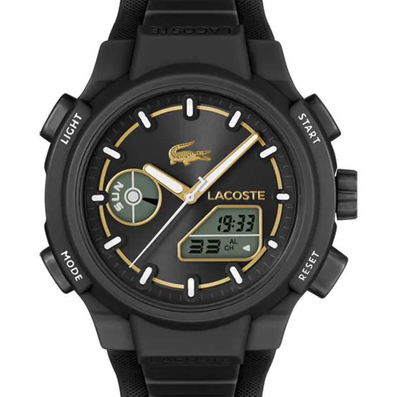 Couleur Noir et doré Garantie 2 ans Type de garantie Internationale Diamètre du boitier 40,00 mm Epaisseur du boitier 14,50 mm Forme du boitier Rond Matière du boitier Acier inoxydable , Plastique Finition du cadran Soleillée Couleurs Cadran Noir Fond de la montre Fond maintenu par des vis Forme du verre Plat Qualité du verre Verre minéral Boutons 1 bouton remontoir , 4 boutons poussoirs Mouvements Quartz Complications Quantième Date , Jour , Mois Fonction chronographe Oui Complications Chronographe Chronomètre - 24 heures , Chronomètre au 1/100e Alarme Oui Caractéristiques techniques spécifiques Rétroéclairage Type d'affichage Analogique (aiguilles) , Numérique (digital) Spécificités de l'affichage Aiguilles et index luminescents , Eclairage nocturne , Index et chemin de fer , LCD Fonctions Chronographe , Heures, minutes, secondes, dates, jours, mois , Réveil Etanchéité 10 atmosphères Matière du bracelet Silicone Couleur du bracelet Noir Finition matière du bracelet Gaufré , Micro Perforé